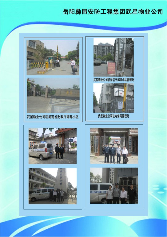 岳陽武星物業(yè)管理有限公司繼岳陽市武星保安公司于2012年2月成立,武星保安公司是經(jīng)省公安廳批準(zhǔn)成立的民營保安公司,為滿足廣大客戶的迫切要求,公司能為客戶提供保安、物業(yè)整體服務(wù)。武星物業(yè)公司技術(shù)力量雄厚,有電梯維修工程師、園林綠化師、水電安裝工程師、消防等專業(yè)技術(shù)人才。為了更好地服務(wù)社會、培育特種人才,公司與岳陽市巴陵職業(yè)技術(shù)學(xué)校聯(lián)合辦學(xué),開設(shè)了保鏢保安武術(shù)散打班、物業(yè)管理班、園林綠化技術(shù)班、水電維修班、禮儀班,現(xiàn)有專業(yè)學(xué)員幾百名。公司為各黨政機(jī)關(guān)、社會團(tuán)體、廠礦企事業(yè)單位、金融機(jī)構(gòu)、房地產(chǎn)開發(fā)商居民住宅、賓館、學(xué)校、娛樂場所等提供人力資源和技術(shù)防范服務(wù)。目前公司有幾十家大客戶,公司優(yōu)質(zhì)的服務(wù)得到了客戶的好評。現(xiàn)經(jīng)公安廳市公安局批準(zhǔn)成立了保衛(wèi)科、督查應(yīng)急大隊(duì),為客戶不定時的服務(wù)和回訪,公司有一批業(yè)務(wù)精、能力強(qiáng)的管理人才,為客戶提供高質(zhì)量的服務(wù)。武星保安物業(yè),保您家安樂業(yè)。